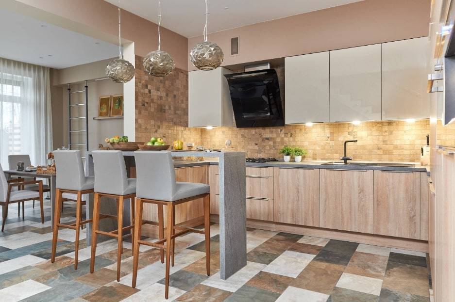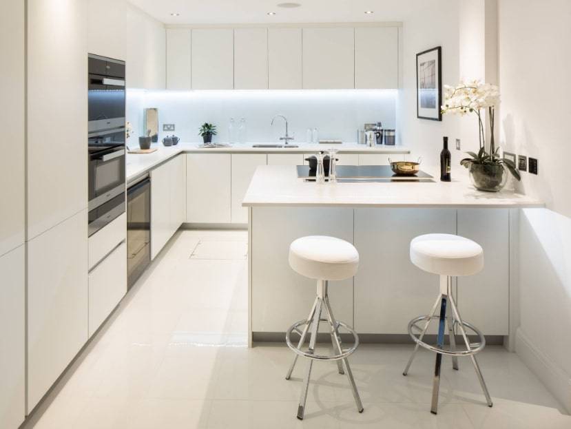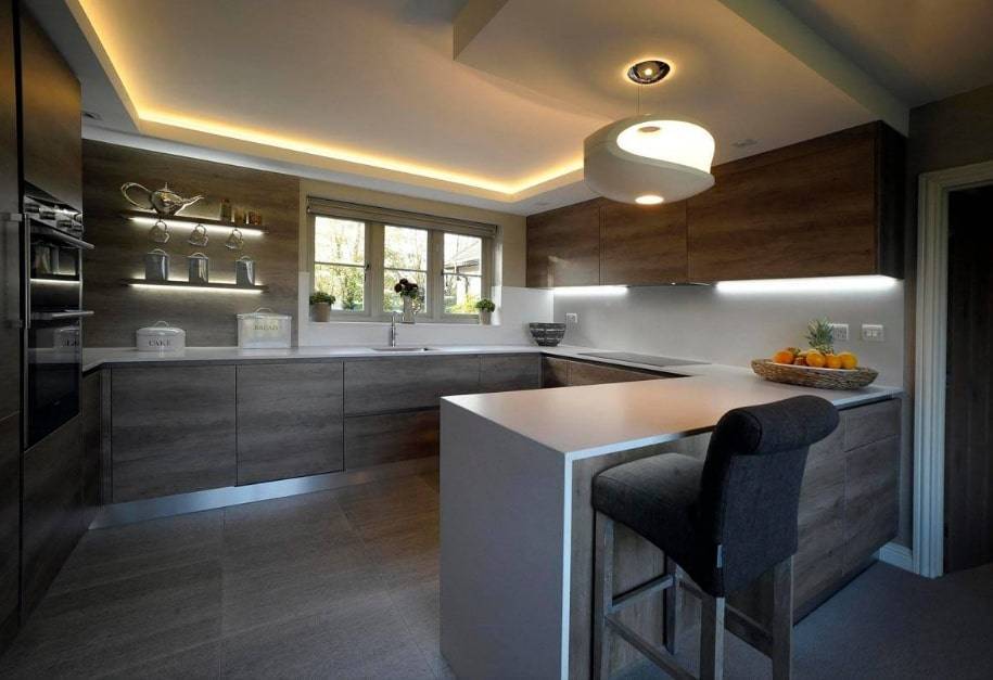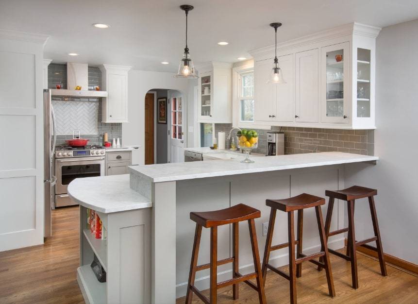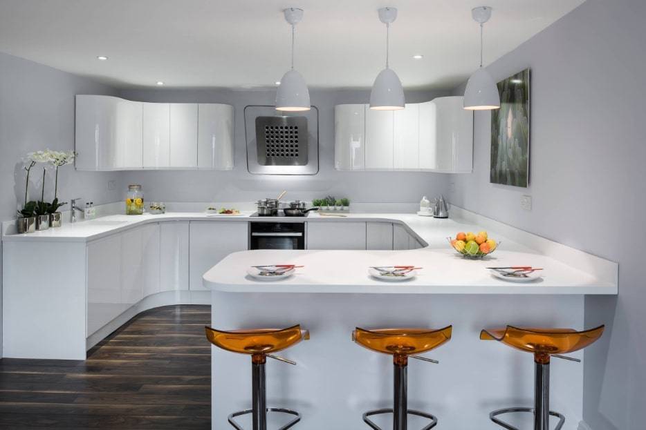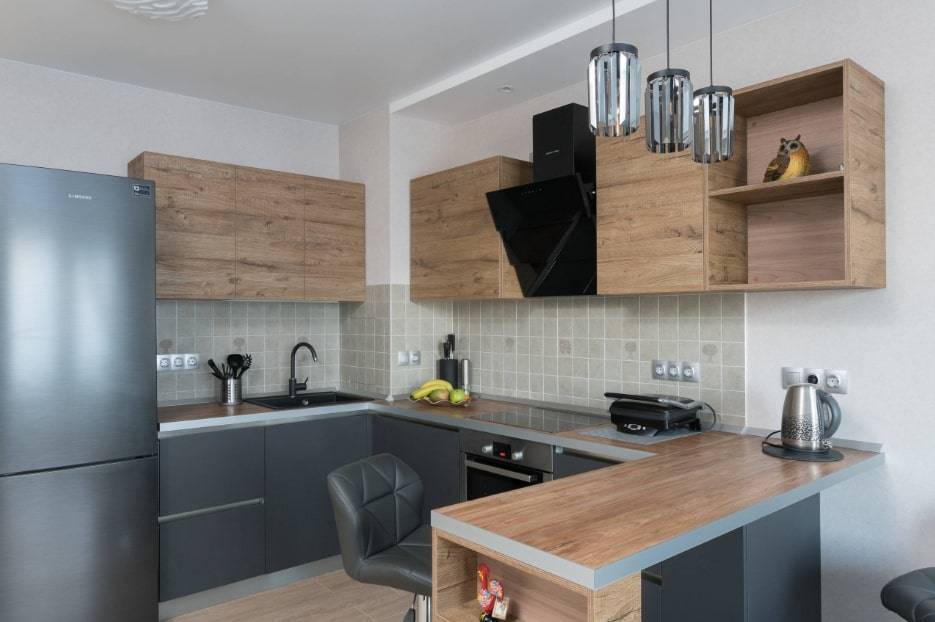 - Угловая кухня с барной стойкой