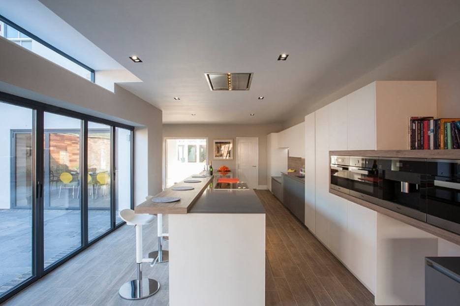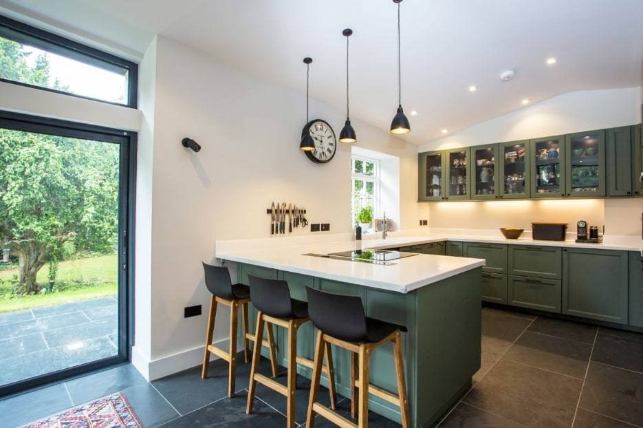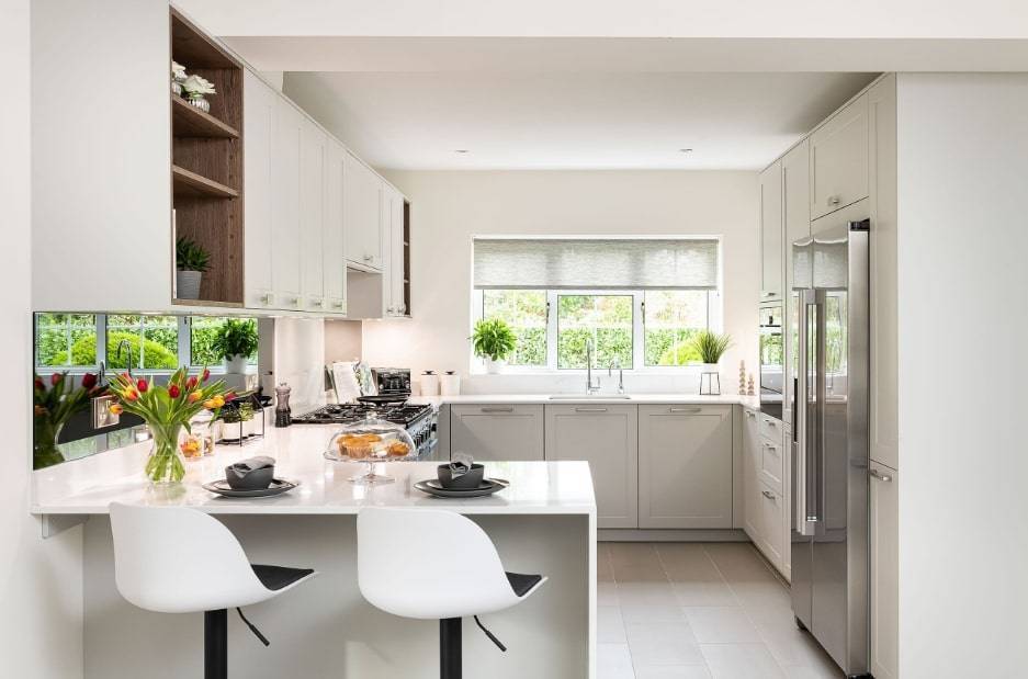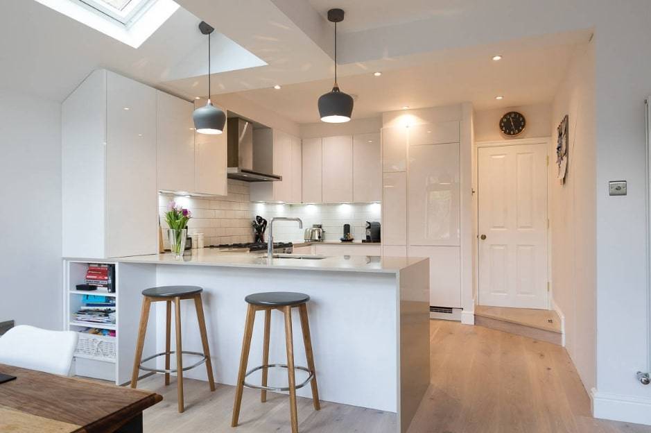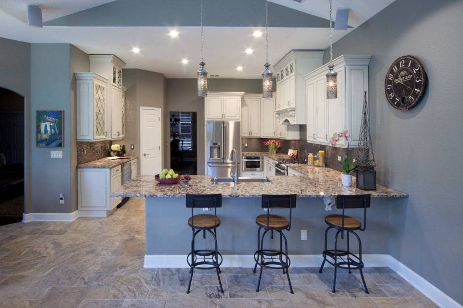 - Угловая кухня с барной стойкой