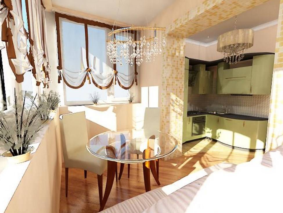 Как мы уже говорили, кухню вполне можно объединить с балконом.