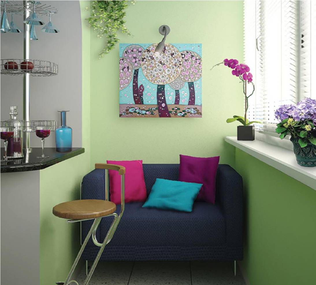Если проблема недостатка площади на кухне отсутствует, можно использовать балкон в качестве комнаты отдыха.