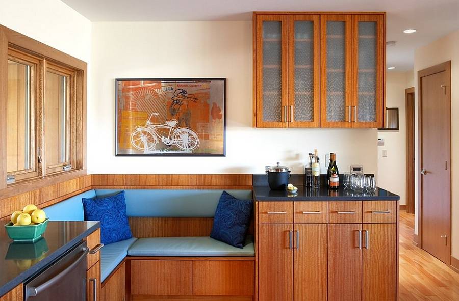 На ней приятно не только кашеварить, но и просто проводить время за чашкой чая или ароматного кофе. Однако эти тона могут быть просто фоновыми, оттеняющими другой яркий цвет (красный, зелёный, голубой).