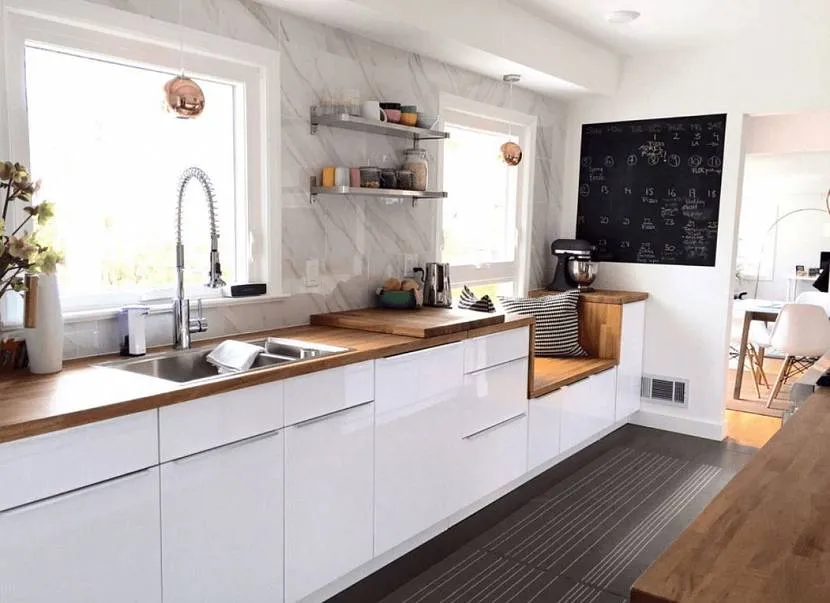 Преимущества белого гарнитура с деревянной столешницей