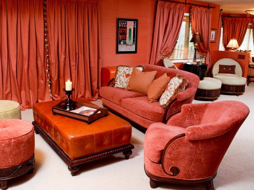 Умеренное использование этого жизнерадостного цвета позволяет легко придать любой обстановке ощущение роскоши. Из минусов алой гаммы можно выделить следующие: