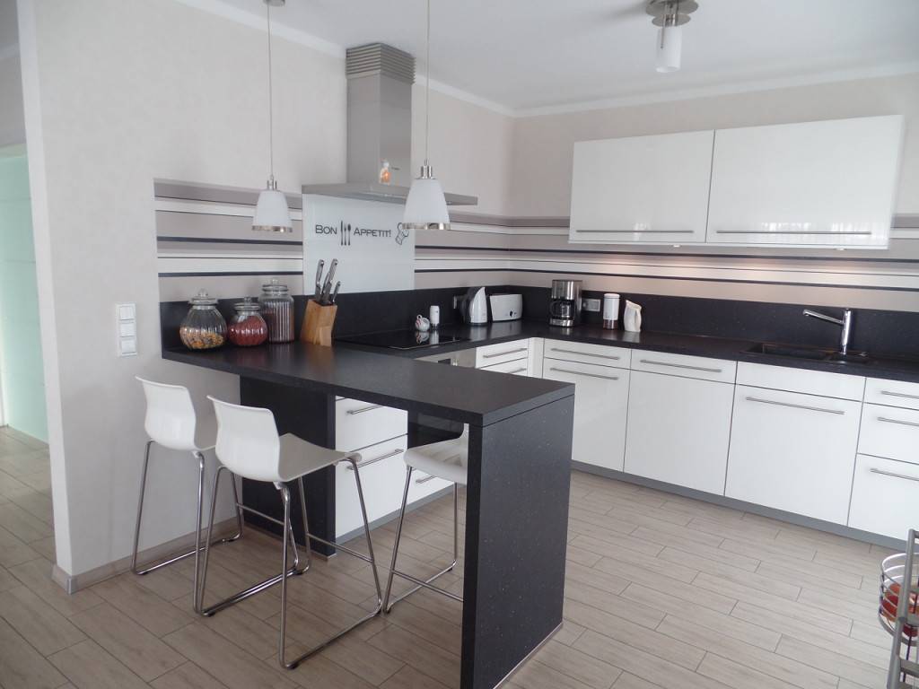 - Вы любите проводить вечеринки, частые гости в доме – это про вас. Поэтому вам нужна не только большая П-образная кухня, но и прилагающаяся к ней большая барная стойка. Она и создаст атмосферу бара, и будет готова гостеприимно уместить сразу несколько человек.