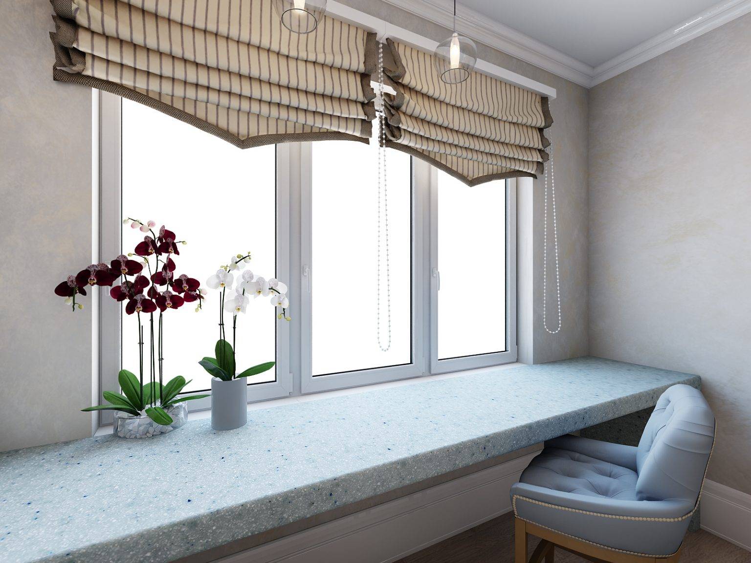 В этом случае бар одновременно может служить обеденным столом, местом для наведения марафета (благодаря хорошему естественному освещению из окна) и зоной отдыха, которую можно оформить в соответствии с собственным вкусом.