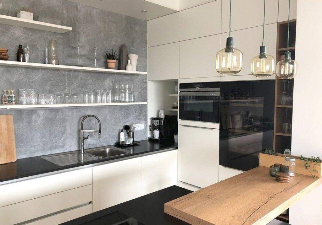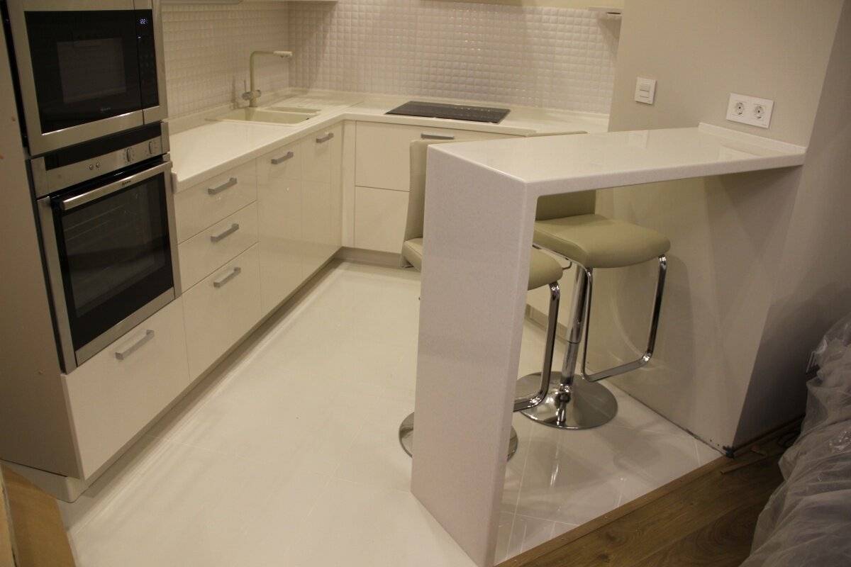 В этом случае вам понадобится современная кухонная мебель, которая позволит смонтировать столешницу, которая будет служить барной стойкой. Здесь стоит установить кухонную мебель по размеру, которая будет адаптирована к вашим потребностям и минимизирует занимаемое пространство.
