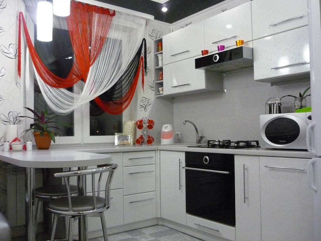 В маленькой кухне не особо разгуляешься в плане размещения дополнительных предметов интерьера. Поэтому лучшее расположение бара в маленькой комнате — это слияние с рабочей поверхностью гарнитура. Так он не займет много места и не будет казаться громоздким.