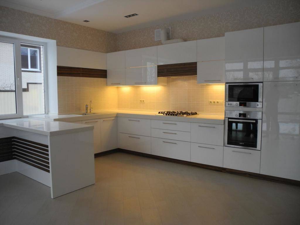 Сделайте белый основным цветом. Светлые глянцевые фасады гарнитура только на первый взгляд кажутся непрактичными, но в процессе эксплуатации вы убедитесь, что они не настолько и загрязняются.