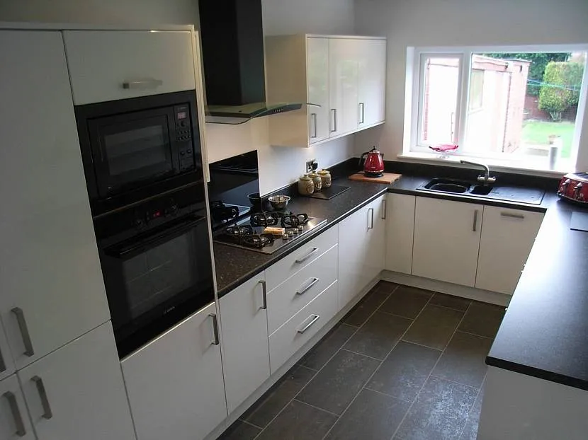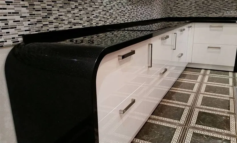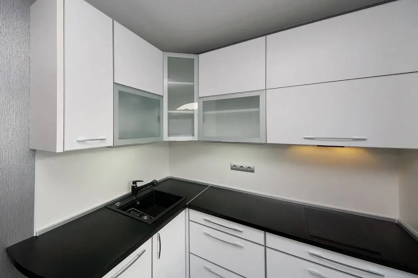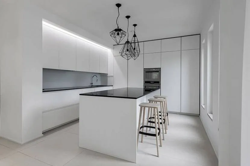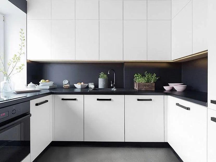 ДИЗАЙН БЕЛОЙ КУХНИ С ЧЕРНОЙ СТОЛЕШНИЦЕЙ