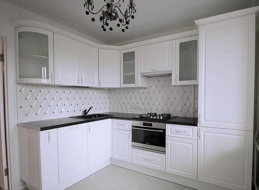 Рассмотрим популярные интерьеры, где белая кухня с черной столешницей выглядит уместно и стильно, подчеркивает особенности дизайна:
