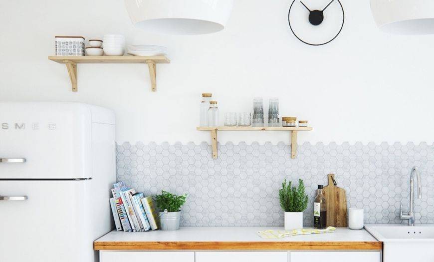На белом фоне менее заметна пыль, известковый налет, разводы и капли воды. Как это ни странно, белая столешница и фартук вовсе не такие маркие, как это кажется на первый взгляд. Пыль и грязь на них оседает ровно в такой же степени, что и на поверхностях других оттенков. Однако, по сравнению с черным, синим, венге или другими темными оттенками, на белом они менее заметны.