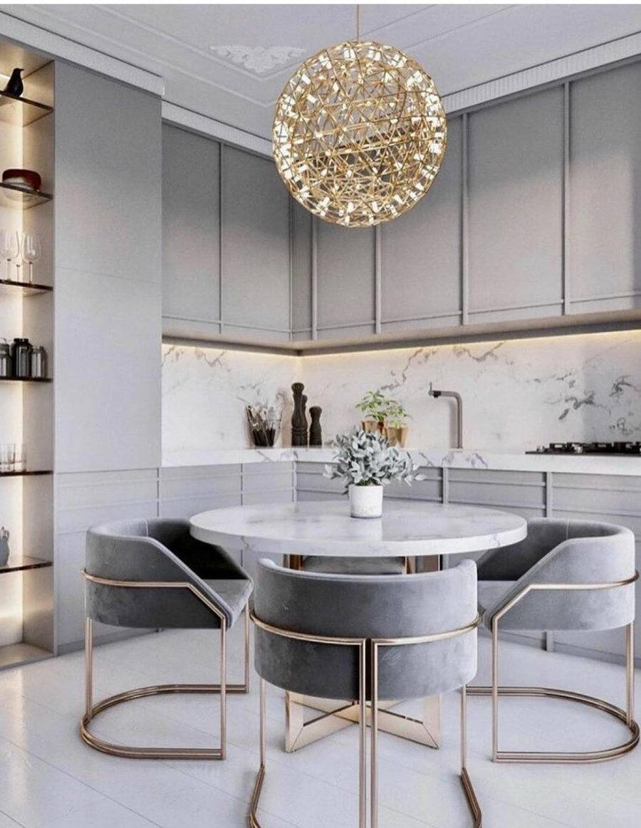 - Сочетайте органические формы предметов. Например, добавьте элементы модерна в классическую кухню – мягкие стулья, стол. Они должны быть уютными и удобными.