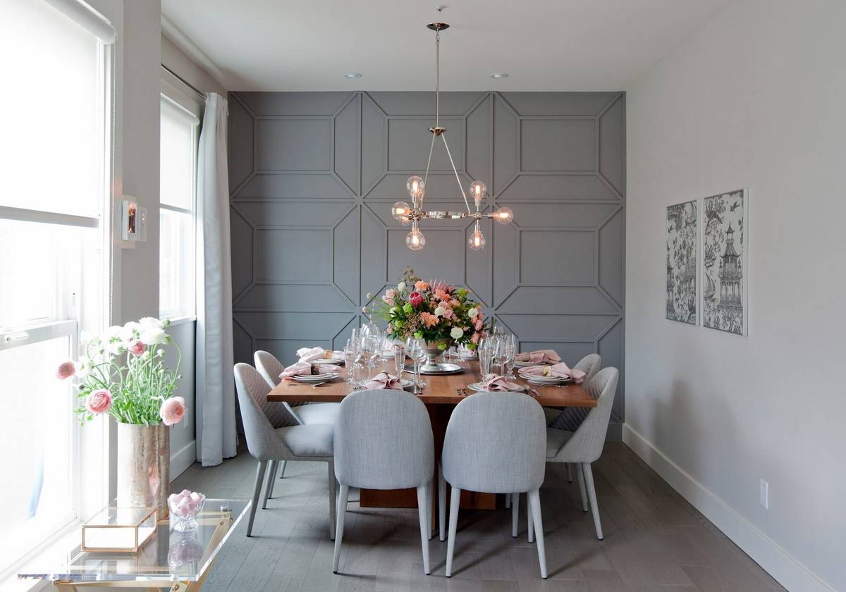 Серый отлично смотрится на фоновой стене, шторах, на обивке мебели. Он отлично сочетается с серебристой патиной, хрусталем и стеклянными деталями.