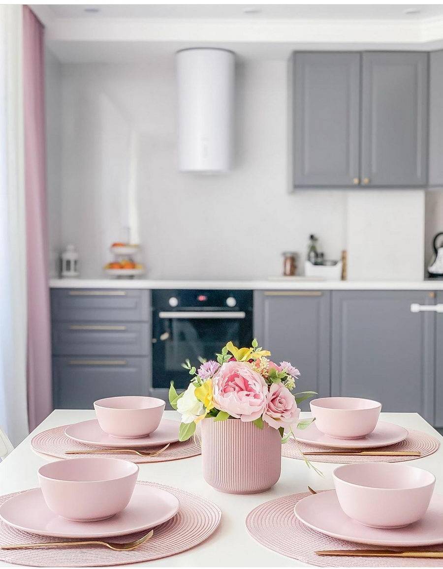 Пыльный розовый в интерьере в 2022 году будет гармонично и стильно сочетаться с персиковым и светло-серым. Мятный можно разбавлять светло-зеленым, нежно-желтым или аквамарином.