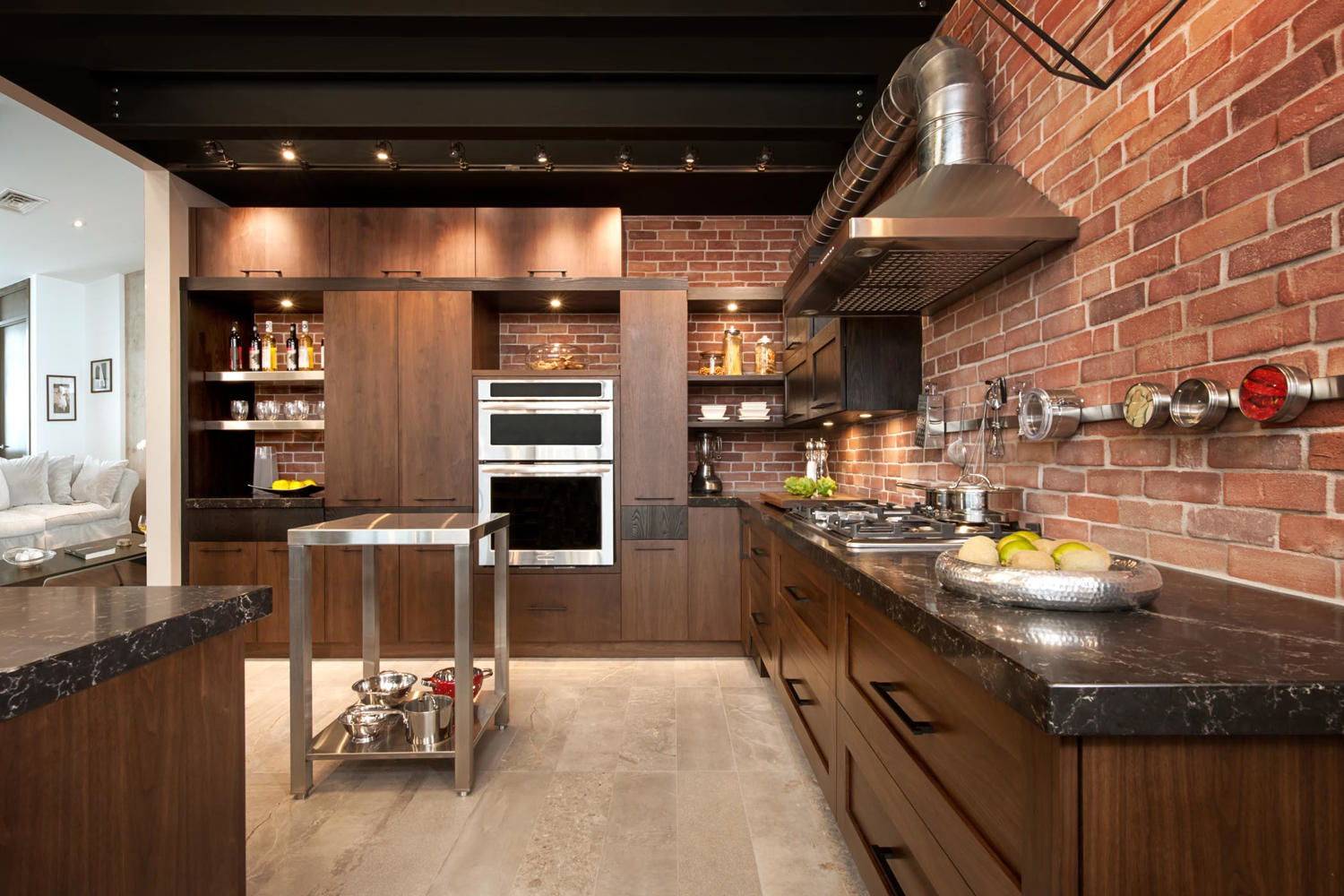 Выделить зону кухни, столовой или гостиной можно с помощью акцентной стены или фактурного материала.