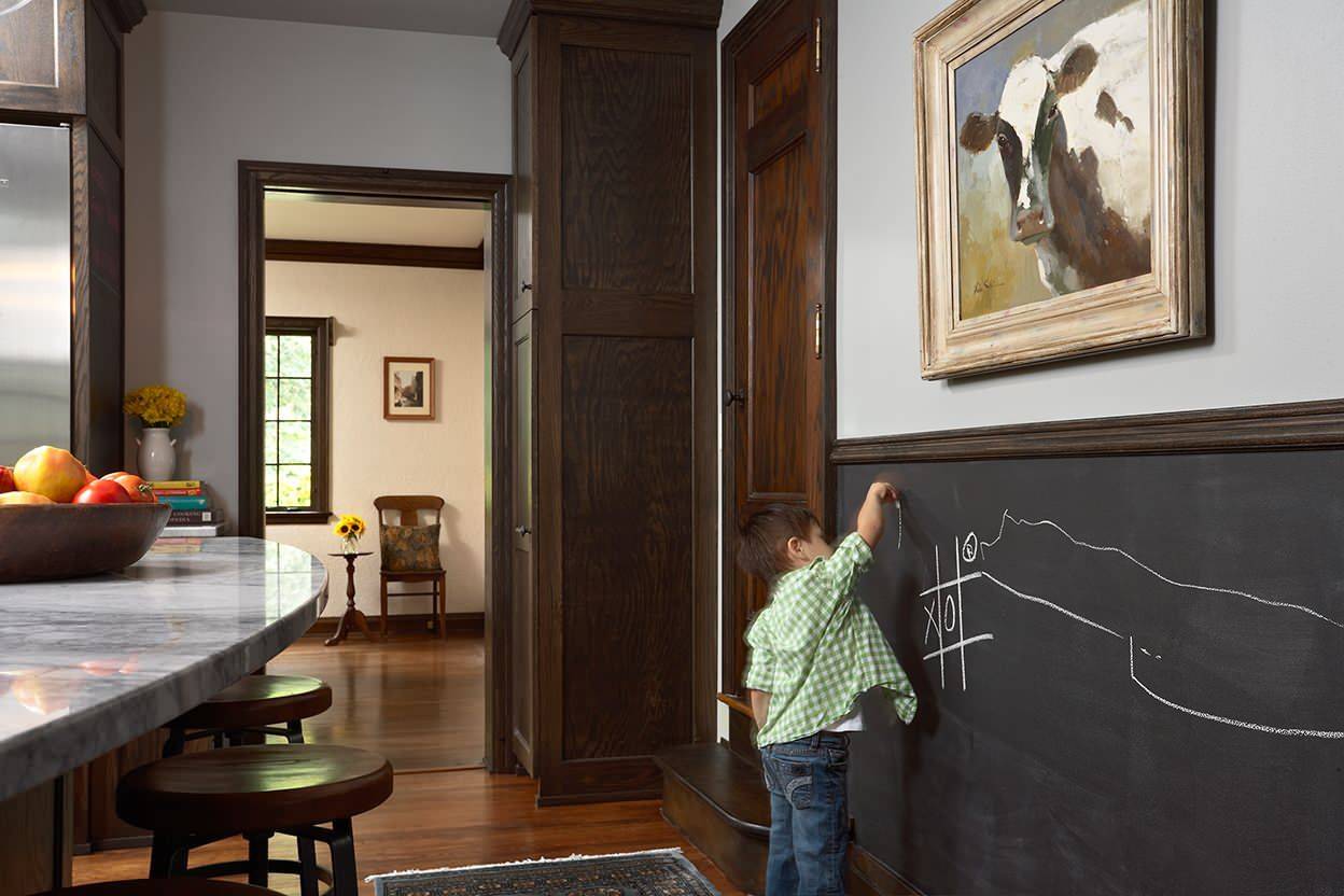 Стена, выкрашенная грифельной краской, станет еще и украшением интерьера.