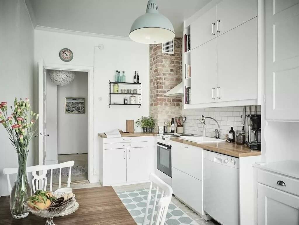 Для небольшого помещения подходит скандинавский стиль. Лаконичность делает его функциональным. За счёт светлого оформления визуально расширяется пространство.