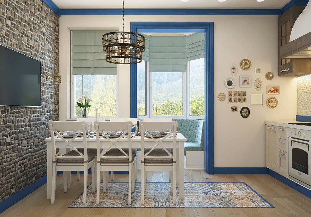 Любителям лёгкости, светлых пастельных оттенков подойдёт средиземноморский стиль. Один из основных цветов — синий. Отличное решение для семей с детьми.