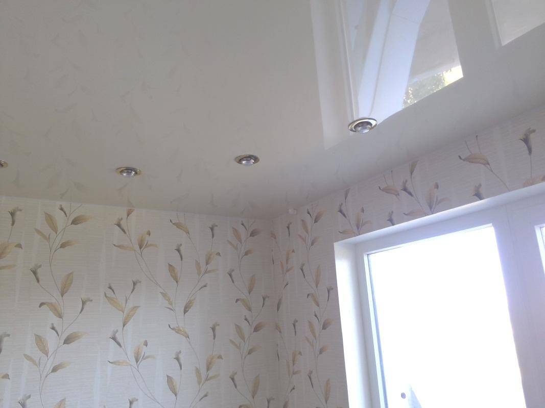 Белый глянцевый натяжной потолок