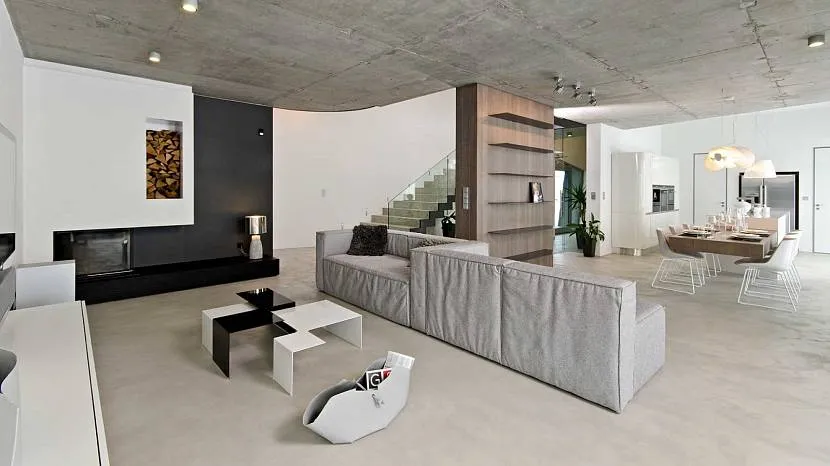Бетонный потолок прекрасно впишется в современную, минималистическую комнатуИсточник design-homes.ru