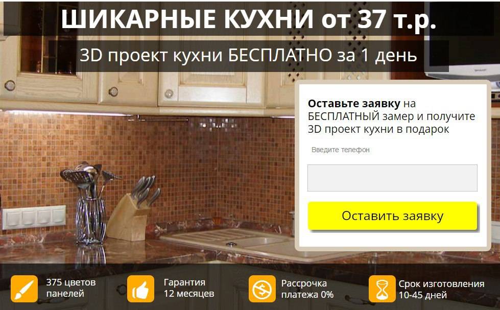 Очень важное УТП для этой ниши, которым обладал мой клиент – это бесплатный 3D проект готовой кухни.