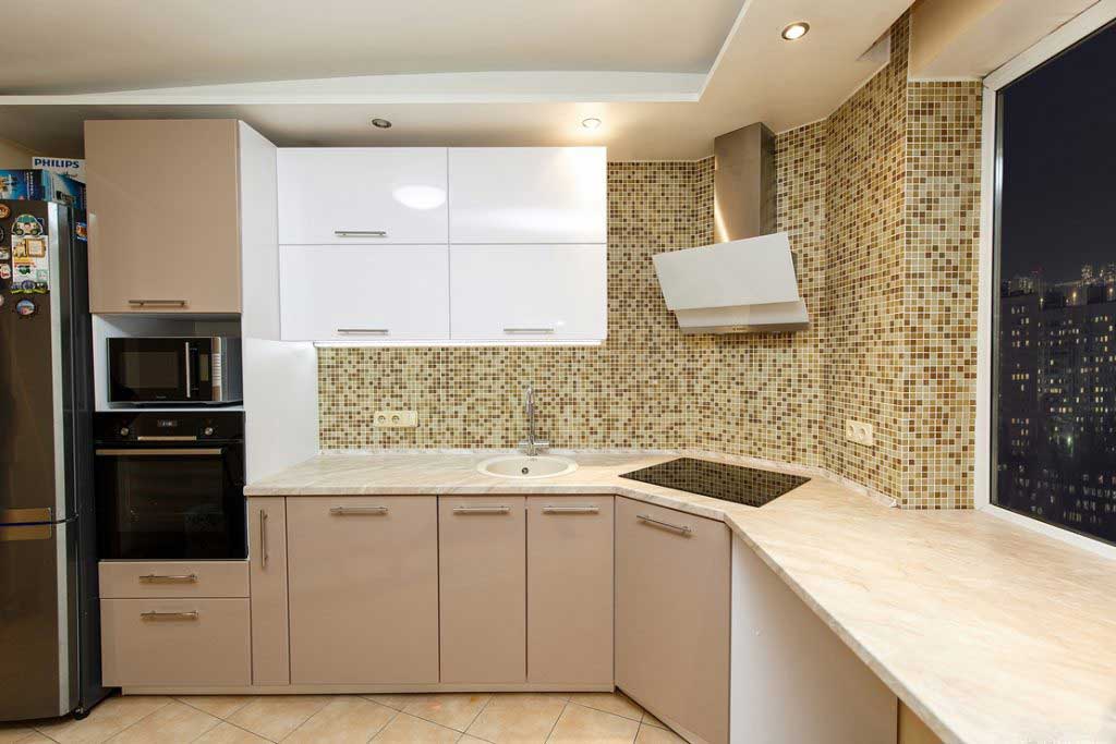 - этот вариант идеально подходит для оформления малогабаритных кухонь, визуально расширяет пространство, делает помещение светлее;