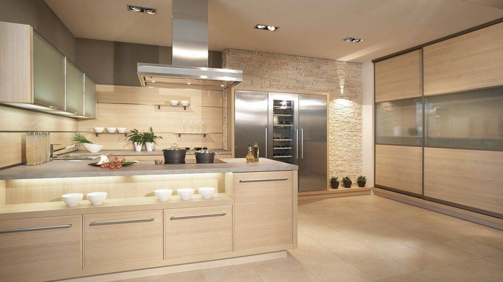 Среди дизайн-проектов представлено множество разработок для кухонь разных площадей. В крупногабаритных помещениях рекомендуется использовать кофейно-молочный оттенок не во всём интерьере, а лишь в одной из его частей.