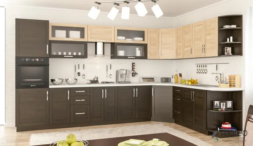 В этом сезоне стилисты интерьерного дизайна предлагают обратить внимание на следующие цветовые сочетания двухцветных кухонь: