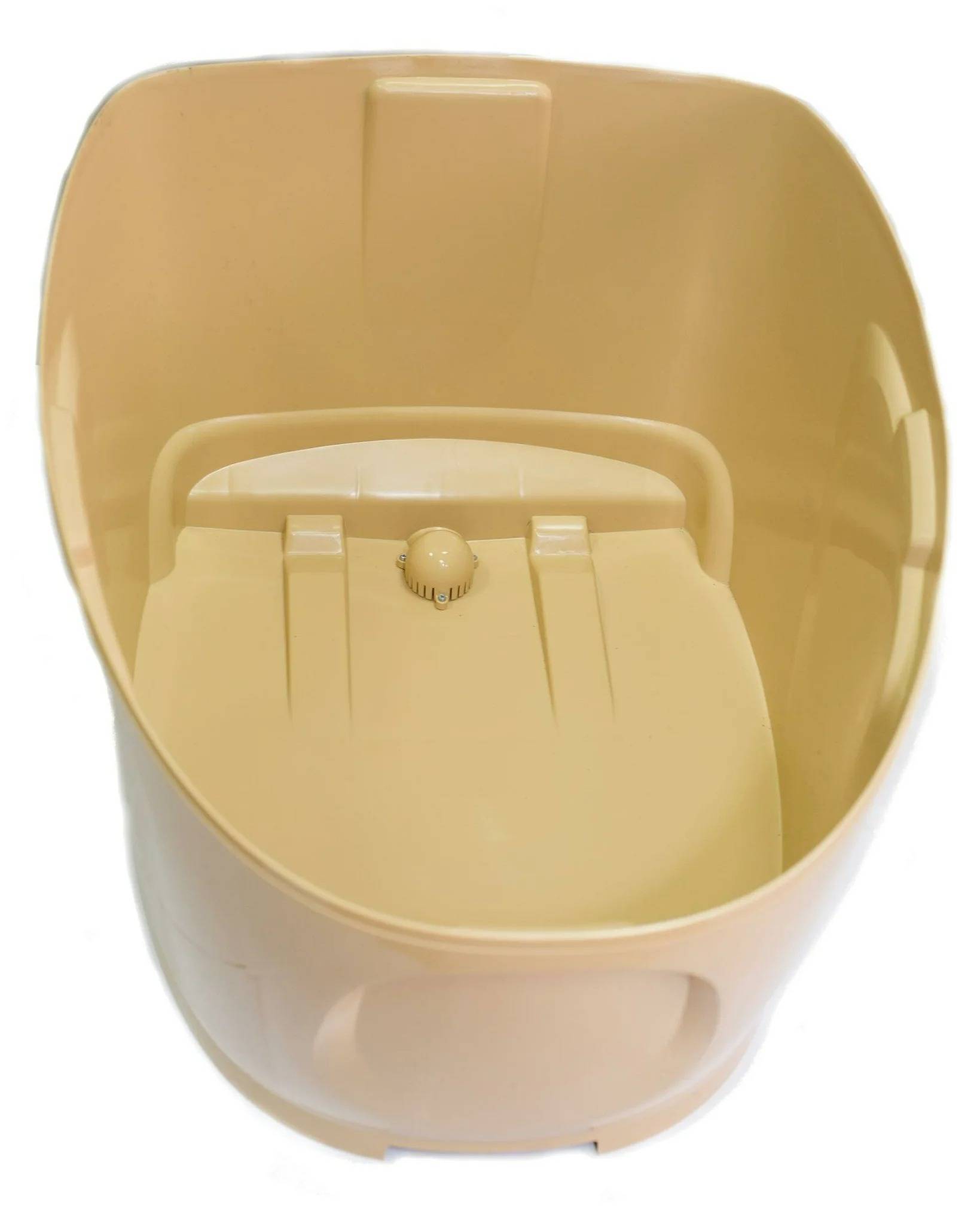 Продолжает рейтинг стационарный биотуалет, который получится использовать почти в любых местах, в том числе в неотапливаемых домах. Здесь используется торфяной способ переработки. Объем бака составляет 100 литров (в инструкции указано, что его нельзя заполнять больше, чем на 9/10), емкости для торфа – 30 литров.
