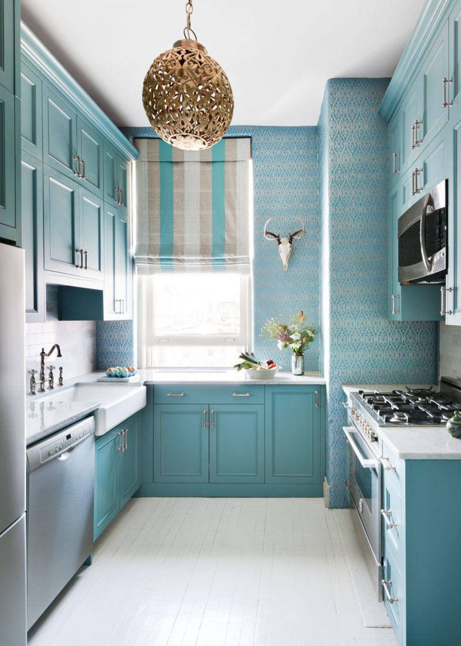 Бирюзовый цвет в интерьере кухни