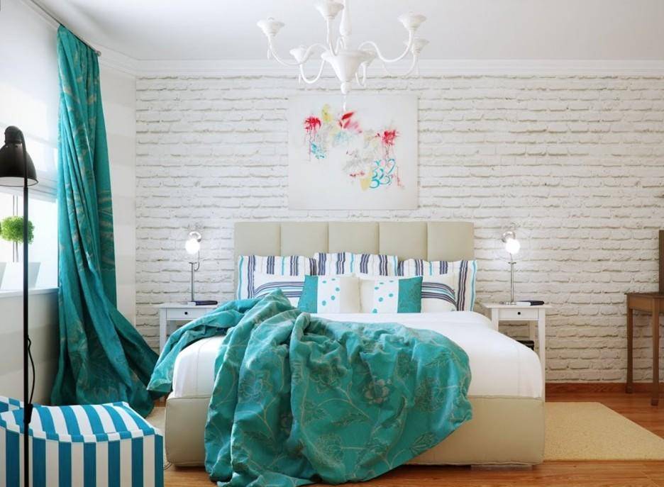 Спальня в бирюзовых тонах