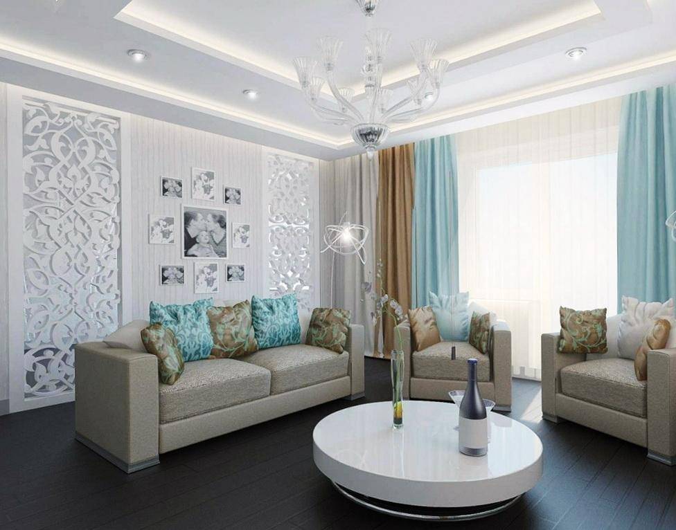 Бирюзовые акценты в интерьере гостиной