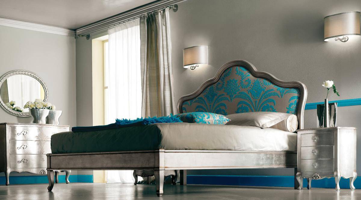 Кровать с бирюзовыми оттенками