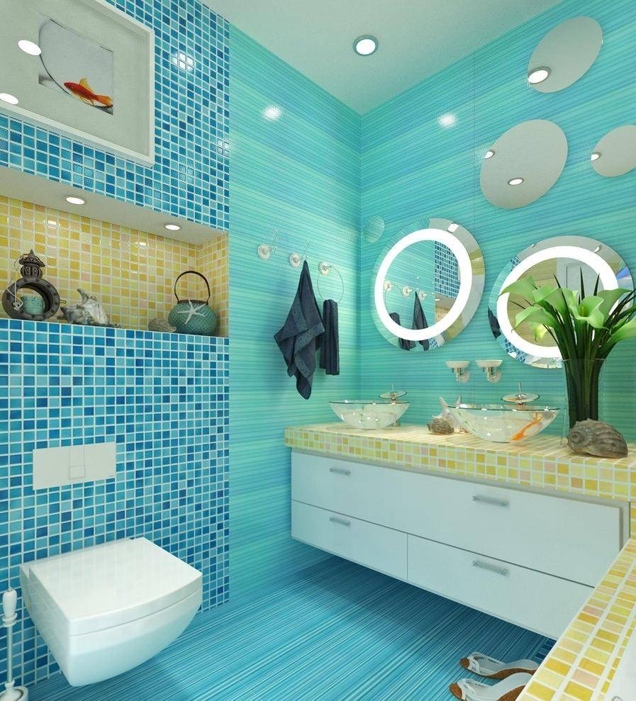 Бирюзовая плитка в интерьере