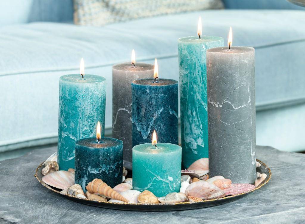 Бирюзовые свечи в интерьере