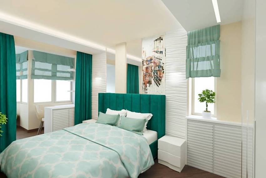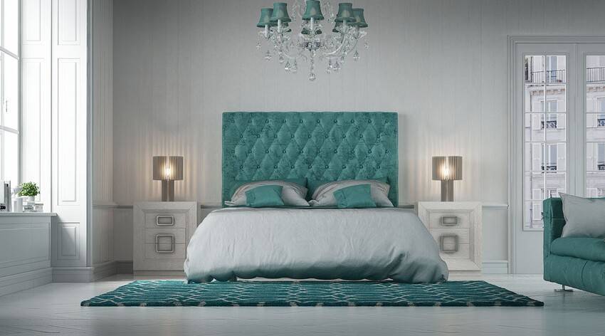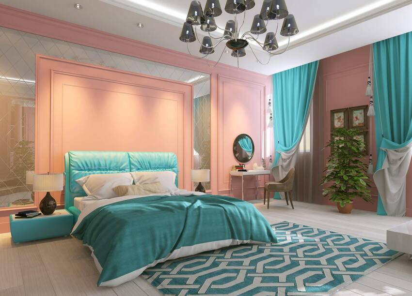Спальне в бирюзовых тонах характерны определённые нюансы: