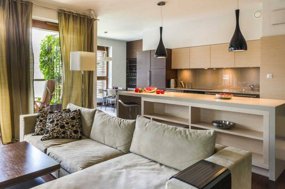 Увеличиваем пространство гостиной за счет уменьшения территории кухни