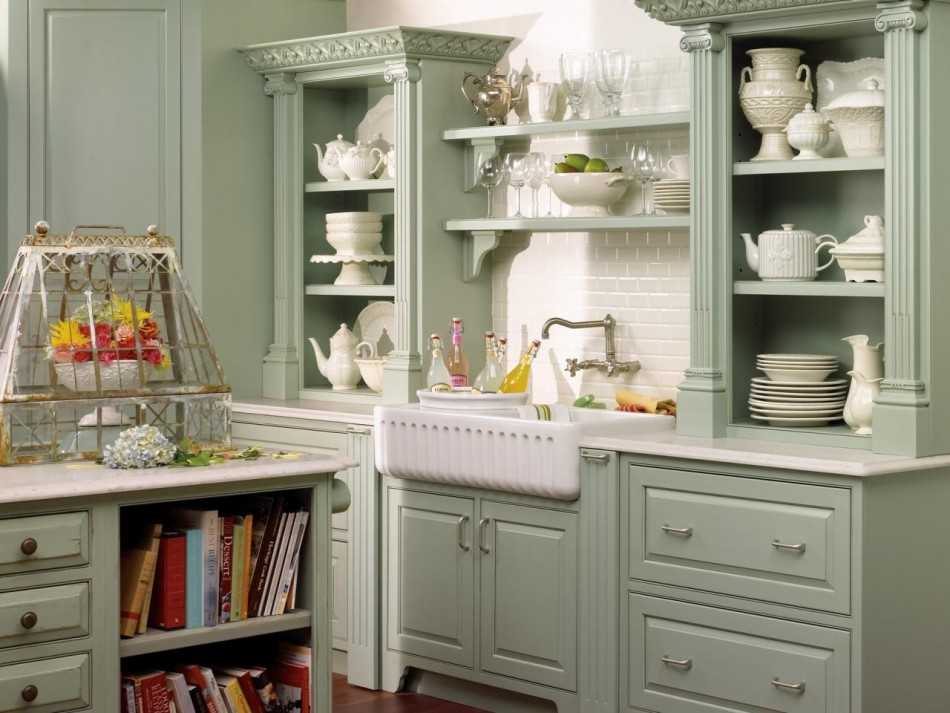 Свою изюминку привнесут и маленькие изящные статуэтки, расставленные на полках и не мешающие рабочему процессу приготовления пищи. В одном из углов можно поставить высокую вазу с декоративными цветами. Украсить стену рядом с рабочей зоной можно с помощью изящной рамки на несколько фотографий.