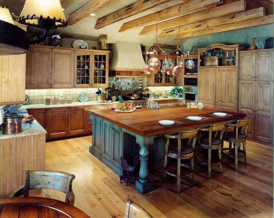 Деревянная мебель в кухне будет выглядеть очень красиво и экологично