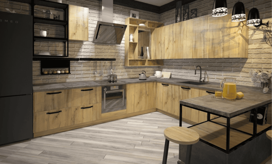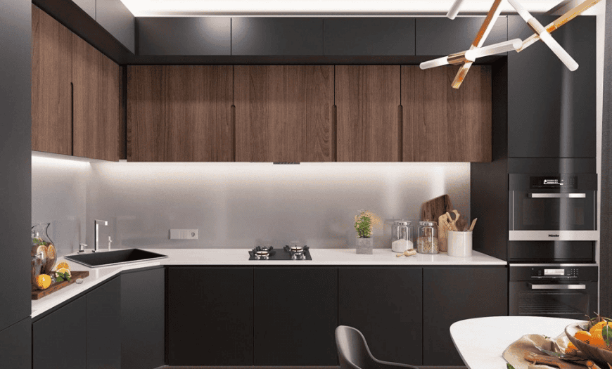 В 2023 году дизайн современной угловой кухни без верхних шкафов будет в тренде. Такая планировка подойдет для любого стиля и размера помещения.