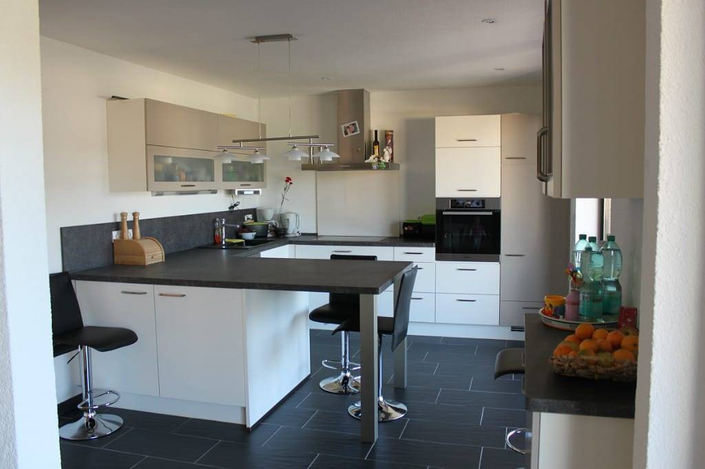 Минус в том, что черный нельзя использовать без сочетания с другими тонами. Иначе помещение будет отталкивать. Дополнить оттенок можно бежевыми или молочными цветами. Также хорошо смотрится кухня в серо-черных тонах.