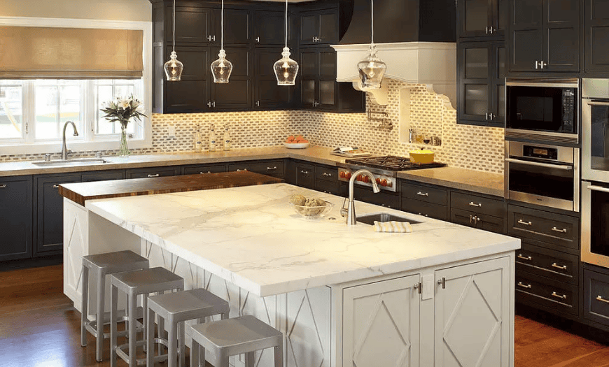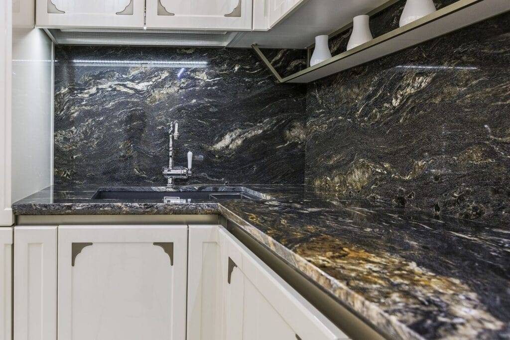 Неплохо в классическом интерьере кухни выглядит керамическая плитка или искусственный камень. Главное, не экономить и выбирать добротные и дорогие материалы.
