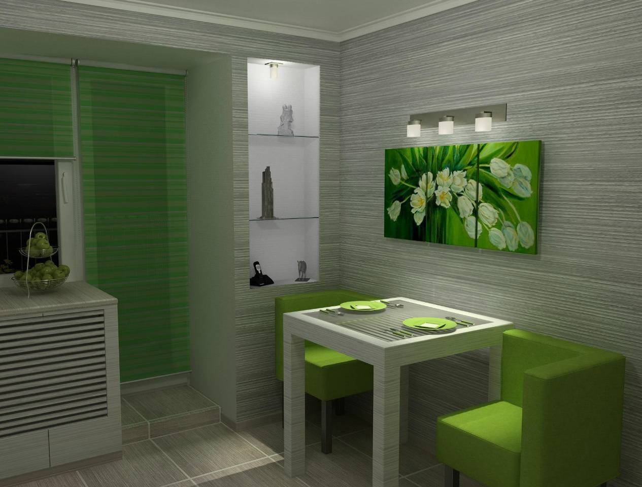В рабочей зоне обязательно используют подсветку под навесными шкафами или на потолке в виде точечных спотов или светодиодной ленты. Здесь также будет уместен один светильник над обеденным столом или несколько аккуратных подвесов. Они должны быть компактными, но не мелкими. В последнем случае недостаток лишь подчеркнется.