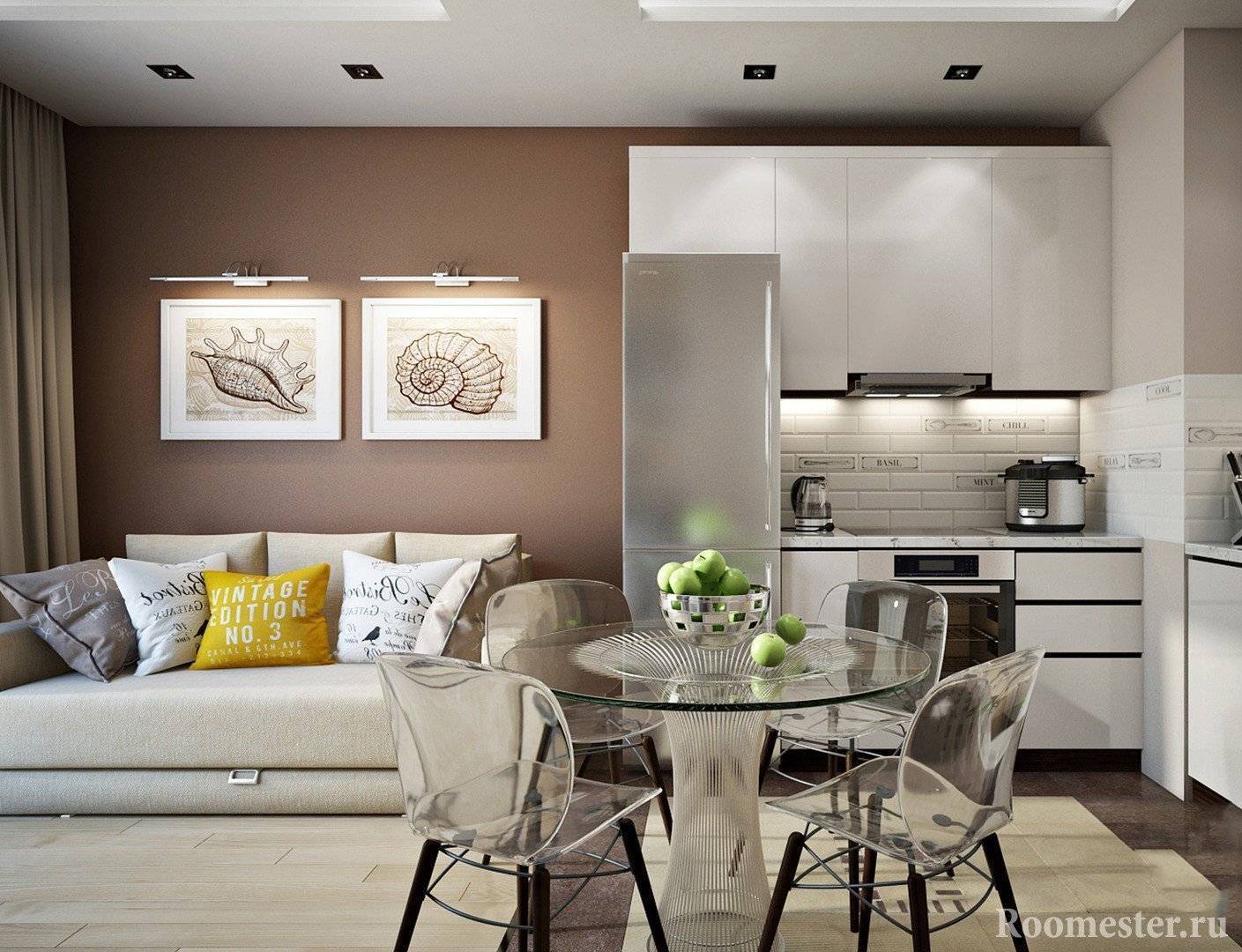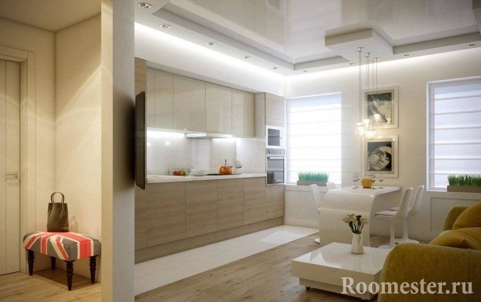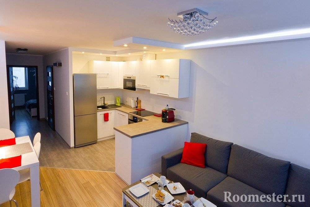 Как выглядит интерьер кухни совмещенной с гостиной можно увидеть в нашей статье.