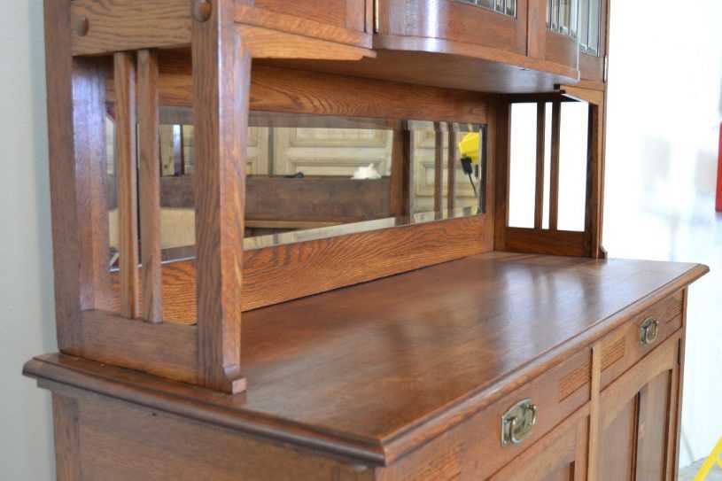 - Буфет из натурального дерева нужно покрыть лаком. Краска здесь не подходит, так как она «удешевляет» внешний вид старинной мебели.