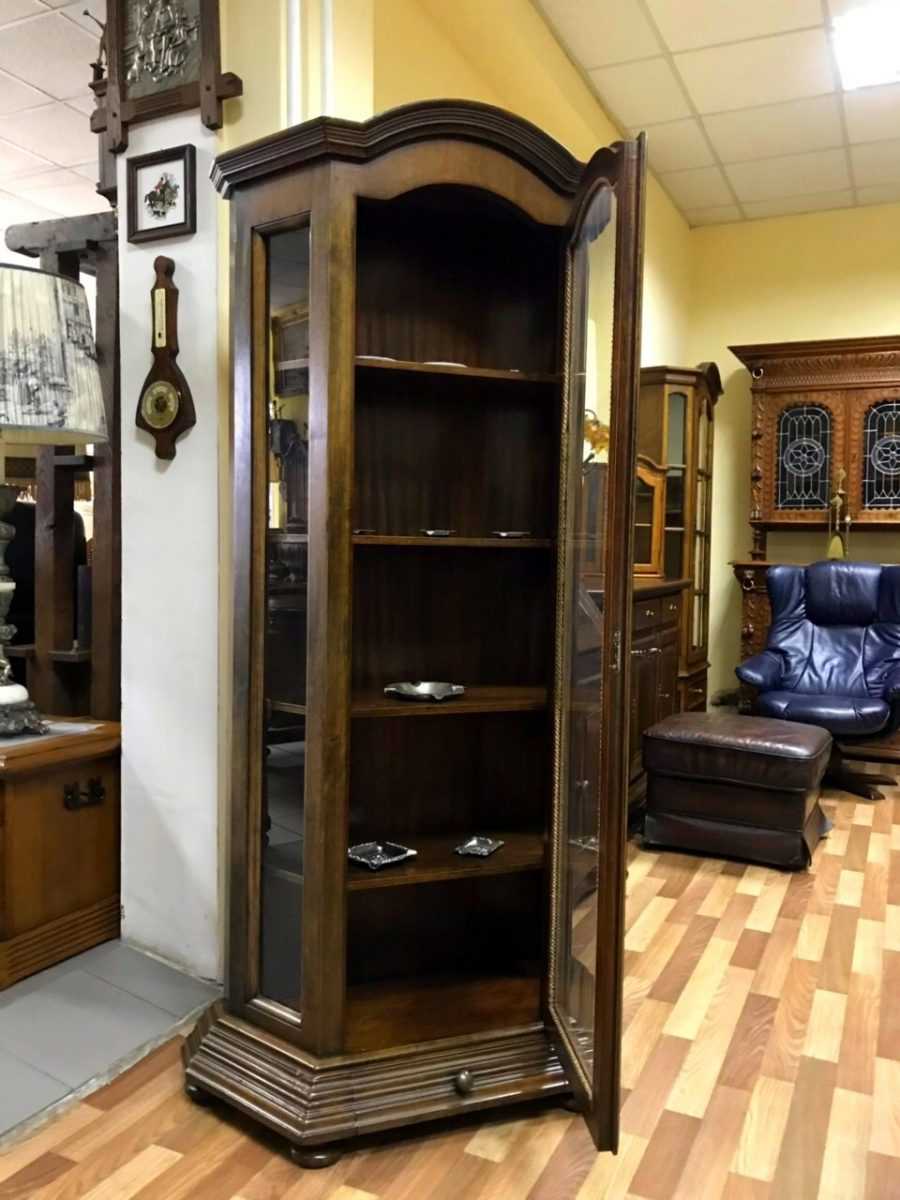 Необходимо только заменить петли на дверях, подтянуть крепления стекол, очистить от пыли и отполировать, после чего его можно снова использовать. Он оптимально подойдет для гостиной в классическом стиле, внутри него можно размещать книги, различные канцелярские принадлежности.