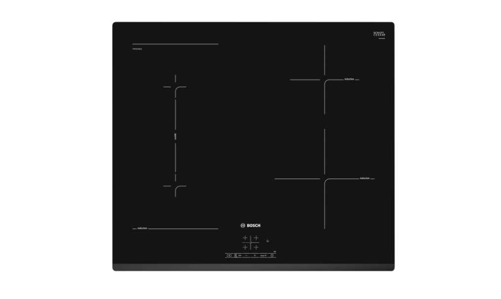 Bosch PWP631BB1E – стильная плита черного цвета до 40 000 р. Конфорок всего 4, однако 2 из них могут объединяться для объемной посуды. Есть таймер и блокировка панели, а также функция распознания посуды.
