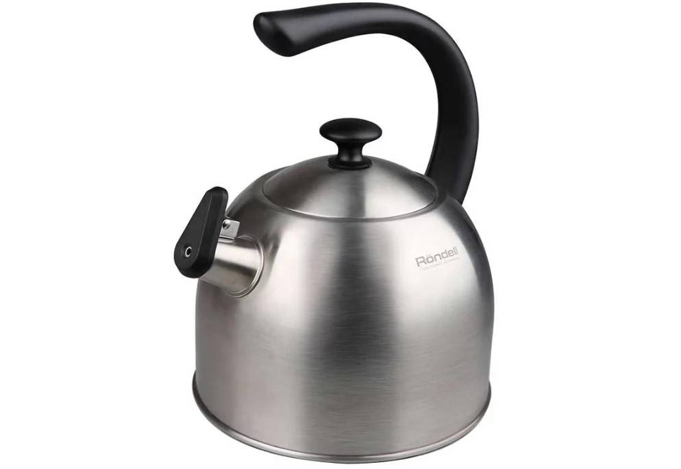 Rondell RDS-921 Strike. Чайник круглой формы красивого серебристого оттенка. Корпус производится из нержавейки, а ручка выполнена из бакелита и не нагревается. Это чайник со свистком, который сделан из того же материала, что и ручка. Это придает чайнику красивый дизайнерский вид. Производство находится в Китае. Есть небольшой недостаток: чайник нельзя мыть в посудомойке. Но по сравнению с достоинствами он не кажется таким уж значительным. Стоимость составляет чуть больше двух тысяч рублей.
