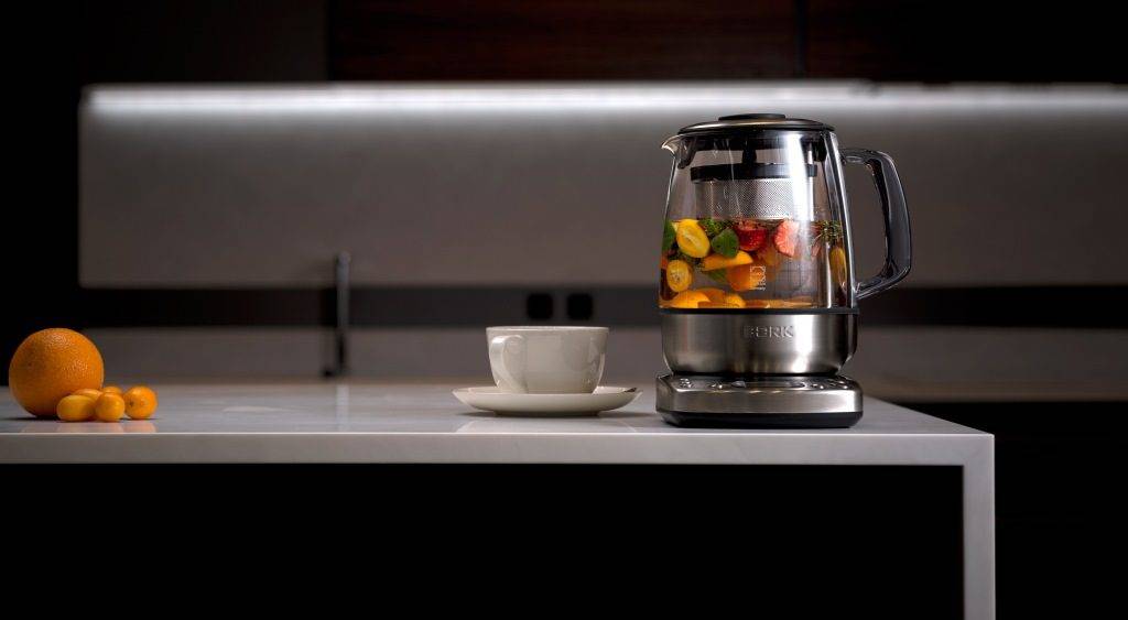 Внешний вид конструкции играет немаловажную роль, важно подобрать такую модель, чтобы она хорошо вписывалась в интерьер кухни. Кроме того, сегодня есть изделия, имеющие различную подсветку, что придает чайнику дополнительную привлекательность;