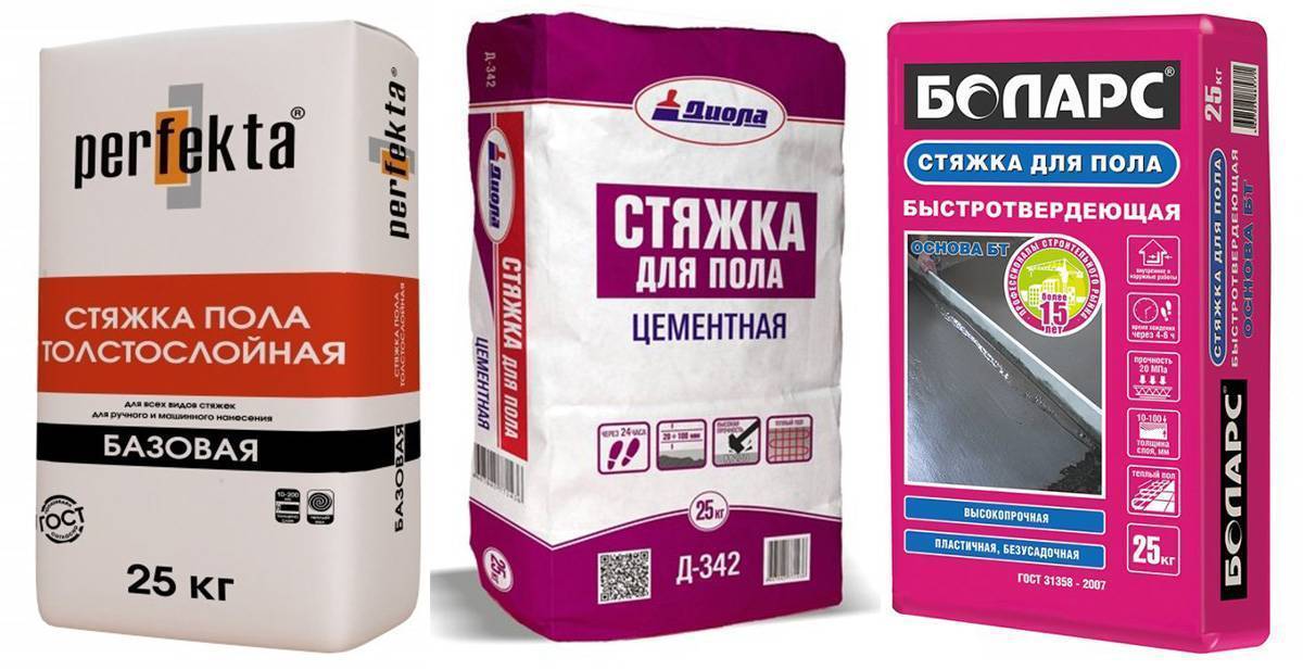 - «Боларс». Универсален относительно условий эксплуатации (влажность и температура), чернового основания (включая грунт), выдерживает значительные нагрузки. Не дает усадку при допустимой толщине слоя в 10 см, быстро затвердевает. Отмечаются низкая стойкость к морозам, рабочее время в течение одного часа. Стоимость выше среднего.